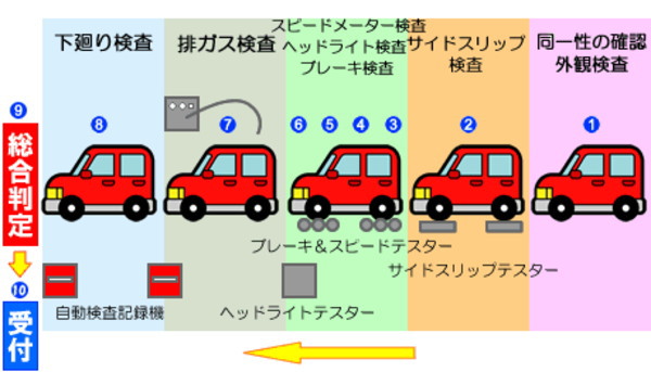 次は予約の確認を行います。 収入印紙を購入し、書類が準備できれば、窓口で予約をしてもらいます。予約の確認が終了し、必要書類が満足していれば、ライン検査が受けられます。